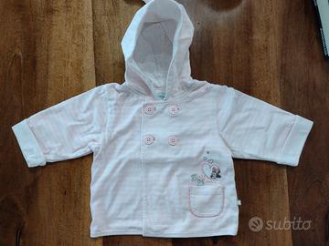 Lotto composto da una giacca in cotone a righe bianche e rosa con cappuccio Disney e uno smanicato fucsia Ovs. Tutto in ottime condizioni, vestibilità 68 cm anche se diversamente indicato sull'etichetta, casa non fumatori.