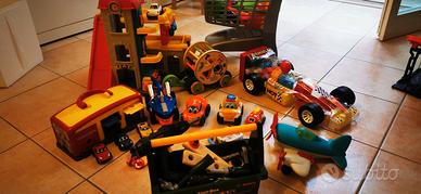 Vendo lotto giochi per bambini dai 0 a 4 anni. Messi bene a parte il camion Hot wheels che si sono rotti un po gli sportelli e il garage che l'elettronica non va.