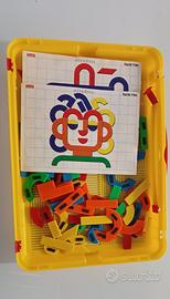 Due foto fanno riferimento allo stesso gioco (costruzione figure e disegni con elementi di plastica magnetici).