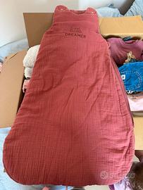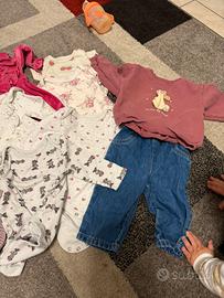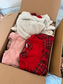 Vendo lotto invernale per bimba nata a giugno Quindi le taglie vanno dai 4 ai 9 mesi più o meno -body manica lunga -body manica corta -pantaloni -magliette invernali -tute coordinate -vestiti (tra cui uno di Natale con fascetta abbinata) -calze e calzetti -pile -giacca a vento -tutina pelosa h&m con cappuccio e coprimani -scarpine varie Inoltre -un sacco nanna taglia 6-18 mesi E per chi ha bisogno compreso nel prezzo anche uno scatolone di pannolini taglia 3 midi Saranno più di 100 pezzi! E vari brand come Zara, Mayoral, Fagottino, BluKids, H&M, Primark…
