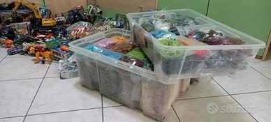 Vendo lotto di mattoncini originali LEGO, circa 30 kg o più. Ci sono tantissimi set vari tra Ninjago, Star Wars, Technic, City, Bionicle, Creator e tanto altro. Alcuni set sono montati o divisi nei sacchetti, altri sono da rimettere insieme. Nel tempo ho cercato di rimettere insieme i vari set presenti dividendo tutto per colore. Ci sono tantissime istruzioni di cui alcune sono stampate come le originali. Alcuni set sono completi ma altri sicuramente incompleti perché giocati nel tempo. Ci sono centinaia di Minifigure e loro accessori. 5 scatoloni pieni più uno di istruzioni. Ci sono tanti altri set che non hanno istruzioni o non sono in foto oppure ci sono alcune istruzioni di cui non ci sono più i set. Insieme cedo un sacchetto da 700 grammi circa di compatibile non in foto.