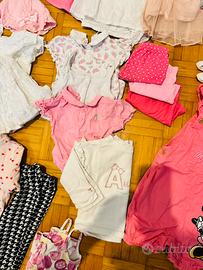 Vendo lotto 42 pezzi composto da: 3 body mezza manica 1 cappellino 1 body manica lunga 1 maglia mezza manica 3 completi (gonna / pantaloni ) 2 canottiere (1body) 3 pantaloncini, 1 felpa, 1 salopette, 5 calzelunghe, 3 bavagli, 1 sacco nanna leggero, 3 abiti, 3 abiti maniche lunghe 6 pantaloni lunghi 2 copri spalle maniche lunghe IN PERFETTE CONDIZIONI