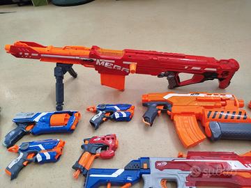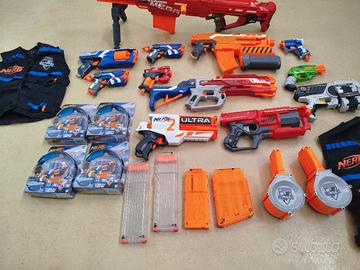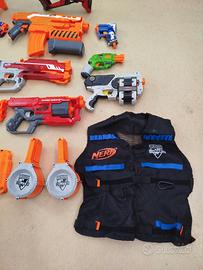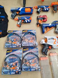 fucili nerf lotto 12 armi + due giubbini e 4 kit nuovi di protezione + caricatori consegna a mano zona piazza napoli buona giornata