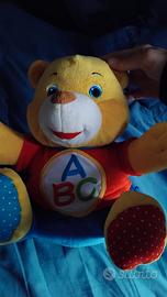 Orsetto ABC clementoni toccando si illuminano le lettere, Basta premere il tasto luminoso sul pancino per poter ascoltare la voce dell'orsetto, imparare lettere e parole.