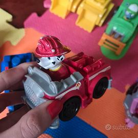 Lotto di 8 personaggi cuccioli Paw Patrol con veicolo (i personaggi non si staccano dal veicoli): Rubble (x2), Rocky, Ryder, Zuma, Chase, Marshall e Skye. Segni di usura visibili in foto ma tutti completi. Lunghezza circa 8/9cm.