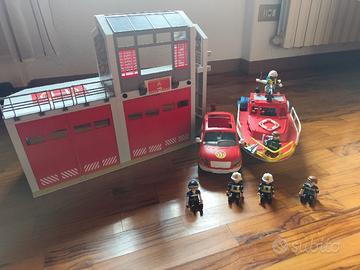 Vendo set Playmobil pompieri composto da:caserma ,(scatola originale)3 camion, elicottero,auto,barca con ventola per farla andare sull'acqua e omini vari con accessori Prezzo 60€