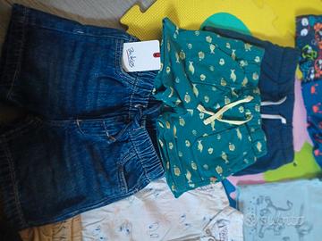 Lotto composto da 17 pezzi, di vestiti primavera estate per bambino, taglia 12-18 mesi, 74 cm. Include una varietà di capi per diverse occasioni. Diversi Marchi tra cui H&M, Okaidi, Bukios Original Marines etc. Tutti capi in ottime condizioni. Lavato e sterilizzato. 2 euro a capo Ottimo affare !!!🥰🥰🥰 - 1 pantalone lungo Original Marins con stamoa Topolino. - 1 Pantaloncino in denim blu nuovo. - 2 Pantaloncini in cotone leggero - 1 Completo composto da Camicia a maniche corte con stampa tweety e pantaloncino abbinato -4 T-shirt di cui 2 pari al nuovo con disegno Topolino. - 3 body a canotta in cotone. -1 pagliaccetto corto verde con stampa re leone - 2 costumi a boxer - 1 t-shirt verde mela in lycra