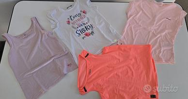 Stock di 17 capi di abbigliamento per bambina di ottima qualità, taglia 9/10 anni. In perfette condizioni. Dettaglio: - 1 vestitino nero; - 1 scarpa invernale nuova; - 1 fazzoletto me contro te nuovo; - 4 canotte/bretelline - 1 leggins felpato (blu) - 1 maglioncino rosa; - 2 collant; - 4 magliette manica corta; - 1 maxi maglia manica corta; - 1 maglietta manica lunga.