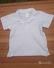 👕 Polo bianca con ancora ricamata sul petto, marca H&M, lavorazione nido d'ape, 100% cotone