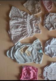 Vendo lotto di vestitini per bambina da 0 a 12/18 mesi sia estivo che invernale (body, tutine, magliette maniche corte, pantaloncini corti, vestitini, magliette maniche lunghe, pantaloncini lunghi, felpe, maglioncini, giacchine tipo 100 g, calzini, bavaglini). La bambina è nata in luglio quindi le cose estive sono primi mesi e circa 12 mesi. Le foto sono indicative ho uno scatolone pieno, mando foto a chi è veramente interessato all'acquisto. Le cose sono state usate poco e non sono macchiate
