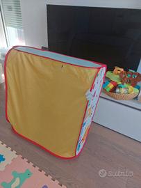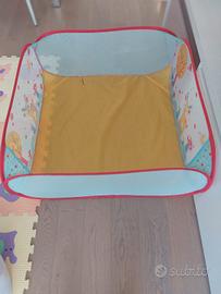 area gioco con palline, comprensi 45 palline, scatola, istruzioni, borsetta blu. ha 2 piccoli strappi su un lato.