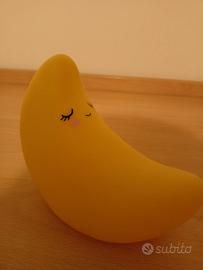 A 5€, vendo lampada abat jour luce notturna Sweet Dreams multicolor a forma di luna del marchio Legami Milano, tenuta benissimo, praticamente nuova, si illumina di giallo rosso verde blu rosa viola, cambiando gradualmente colorazione. Adatta per bambini e adulti per non restare al buio di notte, perfetta da mettere sul comodino per illuminare la camera. Funziona a batterie perciò non consuma corrente.