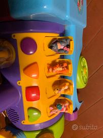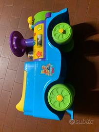 Macchina a spinta , non ha luci e suoni , lateralmente ci sono quattro bottoncini che premendo vengono fuori personaggi di Winnie the Pooh. Ha un orologio su davanti che premendo la lancetta si muove…la seduta si alza c’è un vano contenitore .