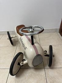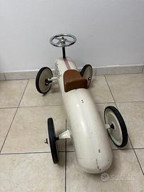 Vendo bellissima macchinina vintage della marca ItsImagical, in metallo, colore bianco con sedile marrone e volante cromato. Design retrò ispirato alle auto da corsa d’epoca, ideale per collezionisti, arredo vintage o come giocattolo di qualità per bambini.