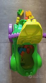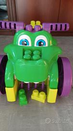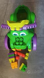 Macchina coccodrillo, cavalcabile e mangia blocchi con contenitore di blocchi e un set di 29 blocchi per costruzione