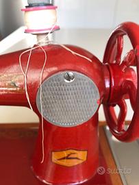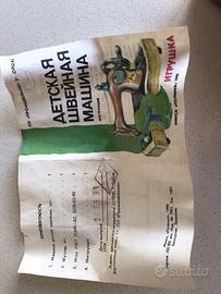 Macchina da cucire giocattolo russa in ferro con base di legno,la base misura cm.16x11,5 l’altezza totale cm.18