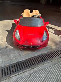 Macchina elettrica marca Faber modello Ferrari, due posti con qualche ammaccatura sul paraurti e uno specchietto riaggiustato.