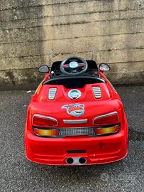 Macchina elettrica telecomandata (solo sul movimento avanti e indietro), utilizzabile anche manualmente con il pedale, con “radio” canzoncine per bambini e luci.