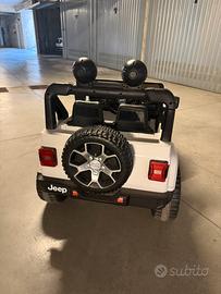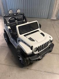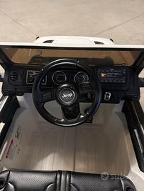 Macchinina elettrica Jeep Rubicon bianca con possibibilita di utilizzare radiocomando nei casi di bambini piccoli oppure puo essere guidata direttamente da esso.. usata ma con batteria da poco sostituita