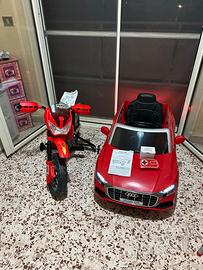 VENDO MACCHINA + MOTO ASSIEME… Audi Q8 elettrica rossa. Design realistico e sicuro: Luci LED, porte apribili, clacson e cinture di sicurezza Comodità e stabilità: Ruote in gomma EVA con sospensioni posteriori e sedili in eco-pelle per una guida confortevole.Intrattenimento e personalizzazione: Lettore musicale con ingresso USB-MP3-TIF per ascoltare le proprie canzoni.Controllo completo: Telecomando con freno di emergenza e funzioni di trazione posteriore e stazionamento elettrico. VENDO PER INUTILIZZO,usata una volta sola . ritiro solo a mano, non spedisco. + moto mai utilizzata!! Prezzo poco trattabile