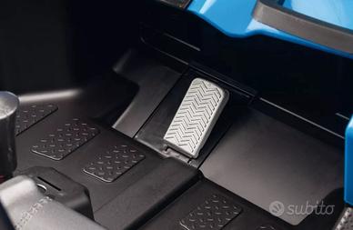 Nuovo, autentico, macchina elettrica a batteria ricaricabile, clacson, cinture sicurezza, sedili regolabili, due marce avanti + retro, ruote motrici con battistrada tassellato, acceleratore e freno in un unico pedale, due ruote