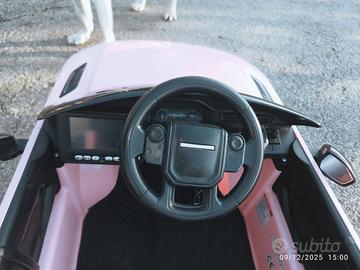 Macchina rosa doppio motore 12 v 25W va su perba ghiaia campi fa salite. Fari led MP3 chiavetta con clacson musica colore rosa max 30 kg . c'è anche telecomando per genitori manca solo il carica batterie che è universale e il nome sulla targa si può togliere. Per info sono a disposizione