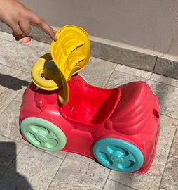 Macchinina in plastica cavalcabile bambino/a 1-3 anni chicco rossa, con ruote piroettanti, clacson meccanico e piccolo vano sotto sella. Buono stato