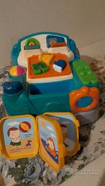Macchinina gioco musicale parlante/luminoso. Pulsanti da premere/tirare/ruotare con parole storie e quiz, bilingue italiano/inglese..