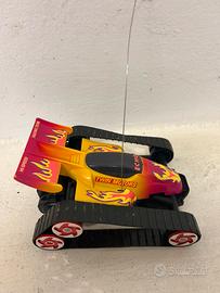 Macchinina telecomandata, con cingoli, funzionante, alimentata a batterie.