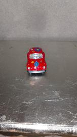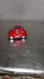 Macchinina a forma di Volkswagen Maggiolino, colore rosso. - Decorata con fiori colorati. - Dettagli a forma di cuore. -Spinta a frizione