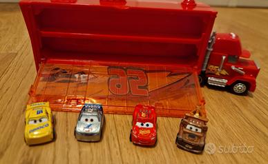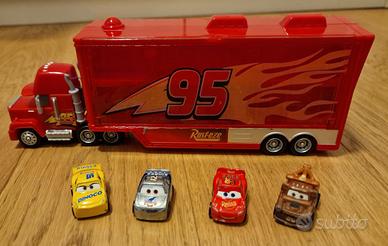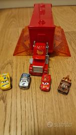 Della linea Cars di Disney Pixar, Mack mini con sportelli, in ottime condizioni, comprato in negozio (€30), completo di mini macchine in metallo Saetta Mc Queen, Cricchetto, Cruz Ramirez e Cal Weathers (tot €45).
