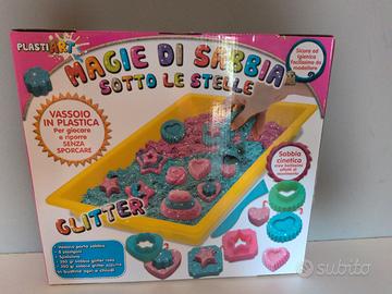 Vendo set creativo "Magie di Sabbia - Sotto le Stelle" della Plastiart. Il kit permette di creare bellissime forme con effetti di movimento grazie alla sabbia cinetica glitterata. Il set è nuovo e le buste sono ancora chiuse.