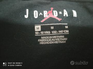 maglia bambino/a Jordan nera mezza manica con scritta colorata e logo dietro scritto più piccolo originale anni 10/12 cm 132/147