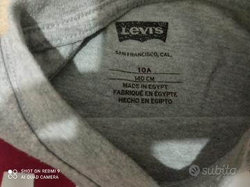 maglia bambino Levis originale grigia con logo rosso mezza manica in cotone anni 10