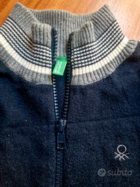 Maglia lana unisex blu con cerniera intera Benetton in perfette condizioni calda e morbida non pizzica sulla pelle 8/9 anni