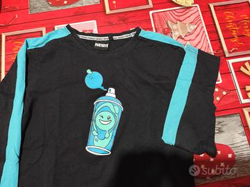 vendo per superata taglia maglia Fortnite taglia 12/13 anni usata ma in ottime condizioni . Manica lunga colore nero con inserti laterali celesti.
