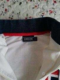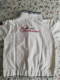 Maglia maniche lunghe in cotone Geox originale taglia 5 anni di colore bianco con inserti. Cerniera e tasche laterali. Usata ma in buone condizioni.