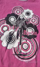 Maglia da bambina maniche lunghe, marca Barbie, taglia 110/116 cm. 4/6 anni, colore rosa, in cotone, decorata anteriormente con Barbie, brillantini e motivi floreali, e posteriormente con cuori. Peso 135 g.