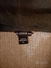 maglia/ felpa con cappuccio Guess in cotone grigia con cappuccio verde chiaro finiture blu con cerniera e logo 100/💯 cotone