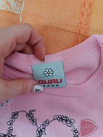 Maglia marca Guru da bambina Rosa con maniche bianche e riga rosa 100%cotone Tg 14 anni Scucita un po' sul bordo ma in buono stato