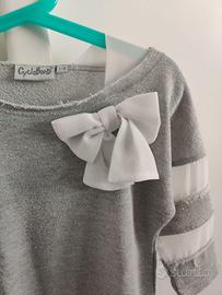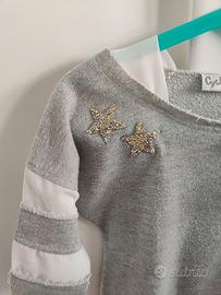 Particolare maglia lunga (utilizzabile anche come vestitino) della Cycleband, taglia 7/8 anni. Il tessuto è un grigio mélange con una bellissima finitura glitterata/metallizzata.