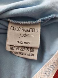 Vendo maglia a manica corta bambino Carlo Pignatelli, taglia 28(dovrebbe corrispondere a 5 anni).Larghezza spalle 30 cm e lunghezza 44 cm.Ottime condizioni, devo solo segnalare un lieve imperfezione davanti lateralmente, sembra scucito ma di fatto non lo è, la maglia è ok(vedere ultima foto).Prezzo 7 euro.