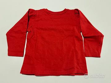 Maglia rossa per Natale per bambina. Con due bottoncini sulla spalla. Marca: Sinsay Taglia: 9-12 mesi / 80cm Materiale: cotone 100%