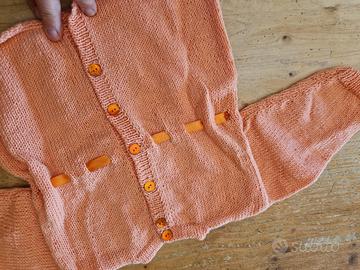 Maglia neonata vintage, realizzata a mano ai ferri da una nonna con amore. Color pesca con nastrino arancione. Taglia indicativa 2/3 mesi, misure reali: lunghezza 28 cm, larghezza torace 24 cm, come nuova, dettagli in foto, vendo a 20€