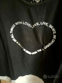 Maglia a maniche lunghe nera del brand Losan, taglia 16 anni. Presenta una stampa a forma di cuore con scritte. Perfette condizioni