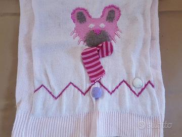 Maglia rosa chiaro con disegno in rilievo bambina in 50% acrilico e 50% lana, taglia 3 anni, capo usato, condizioni come da foto, eventuali difetti mostrati in foto, disponibile invio ulteriori foto e/o informazioni