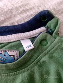 maglietta in cotone manica lunga, verde e blu, con stampa puffo