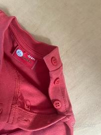 Maglia Du Pareil au Même (DPAM) – colore corallo, maniche lunghe, bottoncini sulla spalla per facilitare l’apertura.