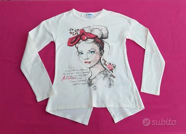 #Maglietta felpa in cotone ,bianco panna, con manica lunga con stampa e scritta, volto ragazza con pettinatura raccolta e fiocco in testa 10/12 anni (Altezza 146 cm) Primigi .nuova #T-shirt, sweat-shirt, blanc crème en coton avec un visage de fille, #T-shirt, sweatshirt, cotton, white cream with girl's face, 10/12 years old #maglietta ragazza #magliettabambina9anni #maglietta bambina10anni #maglietta bambina ragazza 11anni #maglietta bambina ragazza 12anni