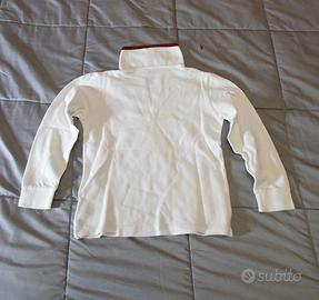 Maglietta a maniche lunghe Gucci per bambino, taglia 5 anni. Presenta il classico stemma Gucci ricamato sul petto e dettagli a righe sul colletto.